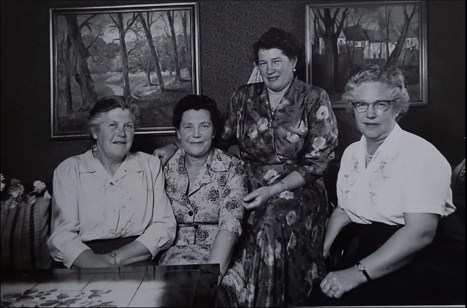 Historien om dette billede er at Bedstefar var i krig; og han skulle have et billede med af hele familien. Det betød en tur til Skærbæk, hvor de store drenge var til hest med de mindste 2 piger. Bedstemor og resten af flokken var gående de 4-5 kilometer.